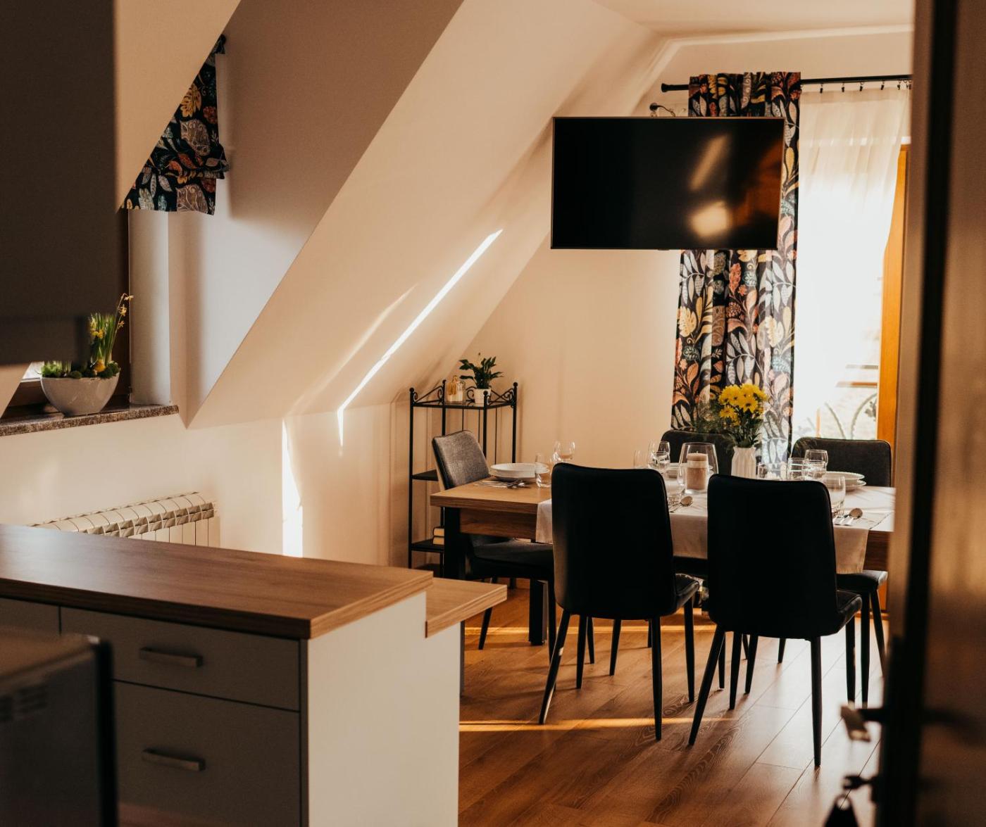 Apartament. This apartment comes with 1 living room, 1 separate bedroom and 1 bathroom with a shower and free toiletries. In the well-fitted kitchenette, guests will find a stovetop, a refrigerator, a dishwasher and kitchenware. The apartment features a flat-screen TV with streaming services, a washing machine, soundproof walls, a coffee machine as well as garden views. The unit has 3 beds. Apartament - 6 osobowy. Powierzchnia pokoju ok.: 44 mkw. ;