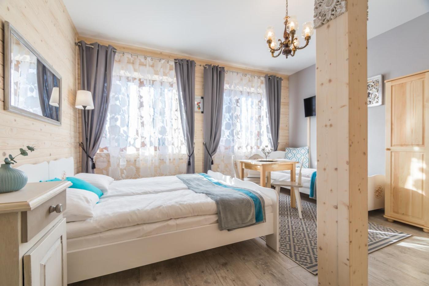 Pokój Czteroosobowy. This quadruple room has a wardrobe, heating and a flat-screen TV. The unit has 3 beds. Pokój Czteroosobowy - 5 osobowy. Powierzchnia pokoju ok.: 25 mkw. ;