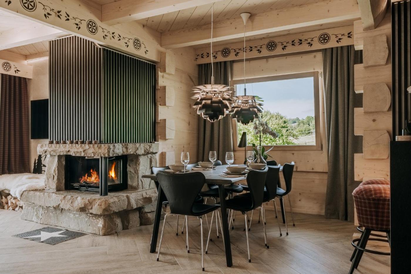 Domek z 3 sypialniami. This chalets standout features are the hot tub and fireplace. Offering free toiletries and bathrobes, this chalet includes a shared bathroom with a shower, a bidet and a hairdryer. Guests will find a stovetop, a refrigerator, a dishwasher and kitchenware in the well-equipped kitchen. The chalet also has a barbecue. The spacious air-conditioned chalet offers a flat-screen TV with streaming services, a washing machine, a private entrance, soundproof walls as well as garden views. The unit offers 4 beds. Domek - 8 osobowy. Powierzchnia pokoju ok.: 130 mkw.